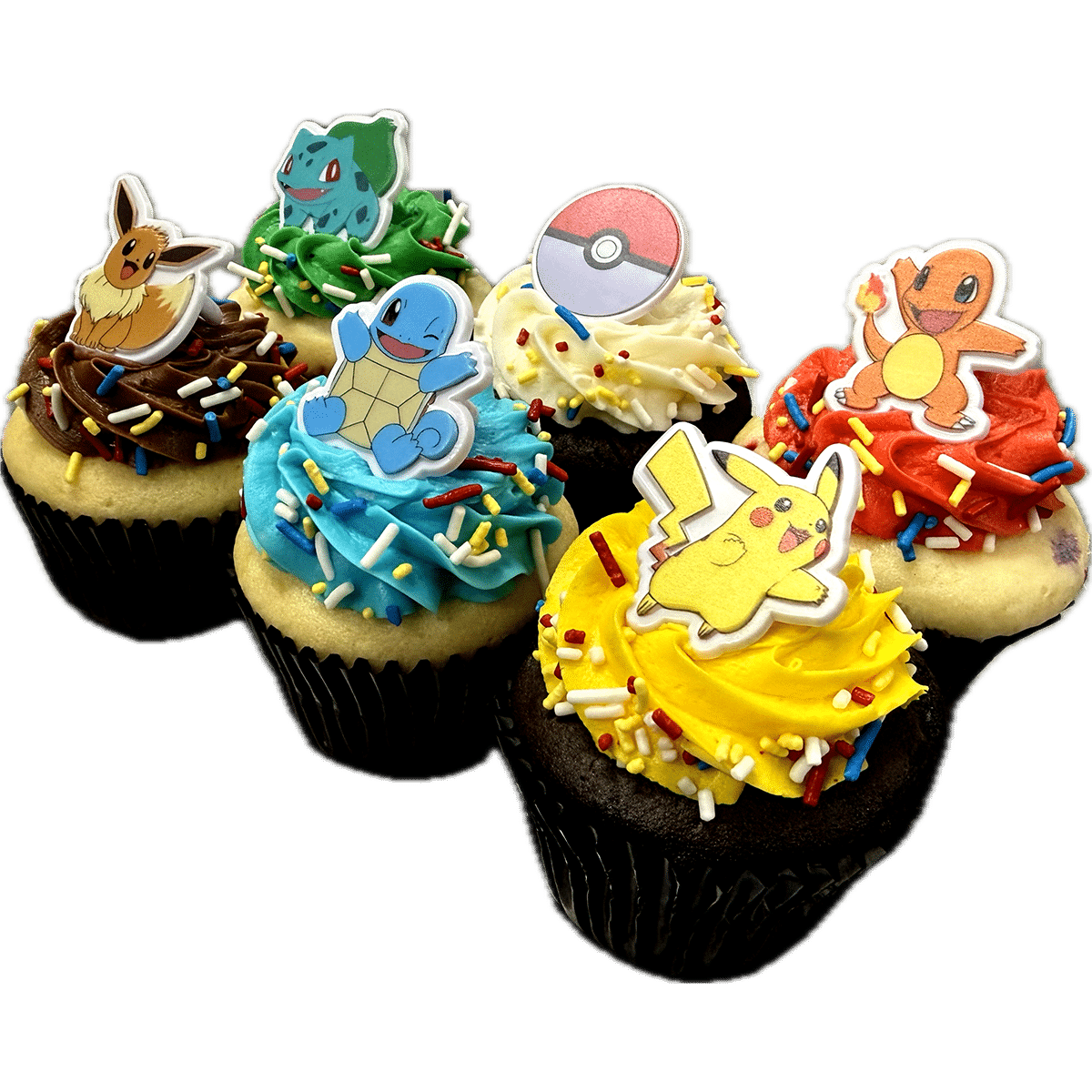 Catch a sweet team of treats with our Pokémon Cupcake 6-Pack! This collectible-inspired assortment features six handcrafted cupcakes decorated with colorful Pokémon designs and themed toppers inspired by fan-favorite characters. Each cupcake is baked fresh and finished with smooth buttercream in vibrant Poké-colors that make every box feel like a prize from a Trainer’s journey.